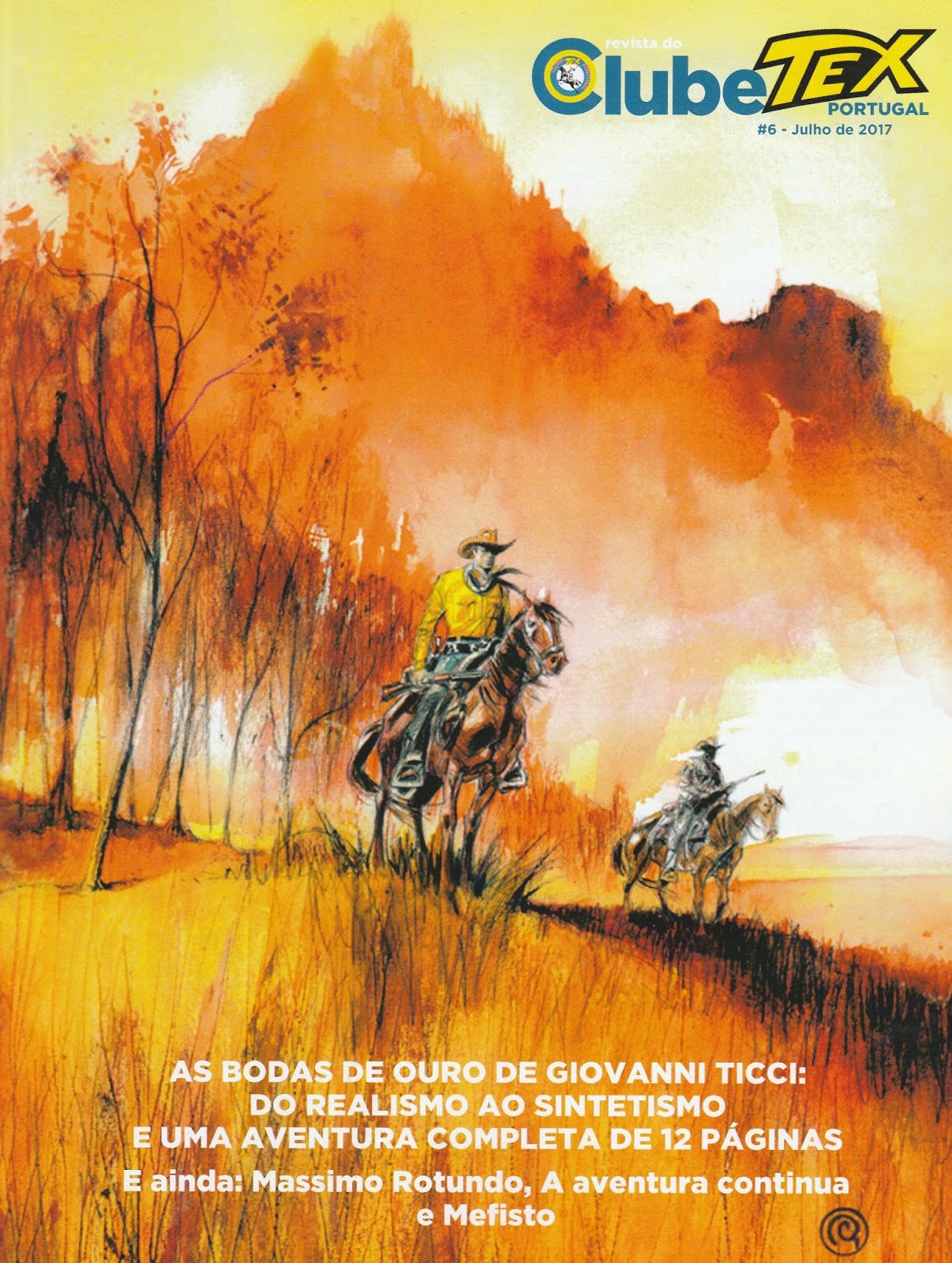Recebi a nova revista do Clube Tex, datada de Julho de 2017. A capa deste número foi exclusivamente desenhada por Massimo Rotundo e como ponto forte, a publicação pela primeira vez a cores do episódio de Tex, "Morte no deserto", com argumento de Nizzi e desenhos de Ticci.