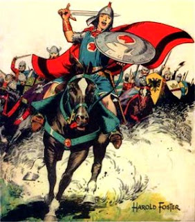 Com o subtítulo «No tempo do Rei Artur», a acção conta a história de um jovem cavaleiro, Príncipe Valente, filho do rei de Thule. A acção decorre no século V, tendo Príncipe Valente como mestre sire Gauvain, um dos Cavaleiros da Távola Redonda. No decorrer da série, o herói conhece a bela Aleta, a princesa das Ilhas Brumosas, com a qual casa e tem filhos. O corajoso cavaleiro combate os Saxões, explora o Novo Mundo, parte em busca do Santo Graal e vive múltiplas aventuras épicas. Em 1971, (prancha 1788 de 16.05.1971), sofrendo de artrite, Foster cede o desenho a John Cullen Murphy, assumindo a responsabilidade total da série em 1980.