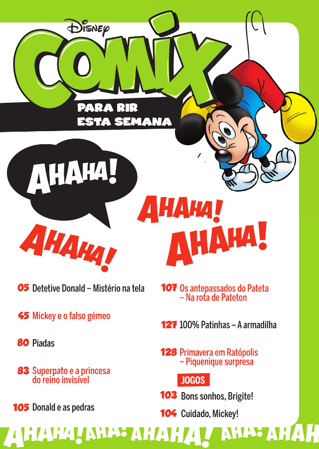 Match point! Chegou até às bancas mais uma edição espetacular da tua Comix! E nada melhor para acompanhar o regresso do bom tempo do que fazer desporto ao ar livre – como o Donald – e, claro, a companhia da banda desenhada preferida dos portugueses! E nesta edição, temos uma daquelas novidades que te vai fazer guardar este número junto das edições de coleção! Estás sentado? Então cá vai… O Donald tornou-se detetive!!! É verdade, seguindo os passos do seu amigo Mickey (que tem também direito a destaque nesta edição, com a história Mickey e o falso gémeo), o pato azarado parece ter encontrado uma nova vocação em Detetive Donald – Mistério na tela! Imperdível!!! Estas e muitas outras histórias na tua Comix de sempre!
